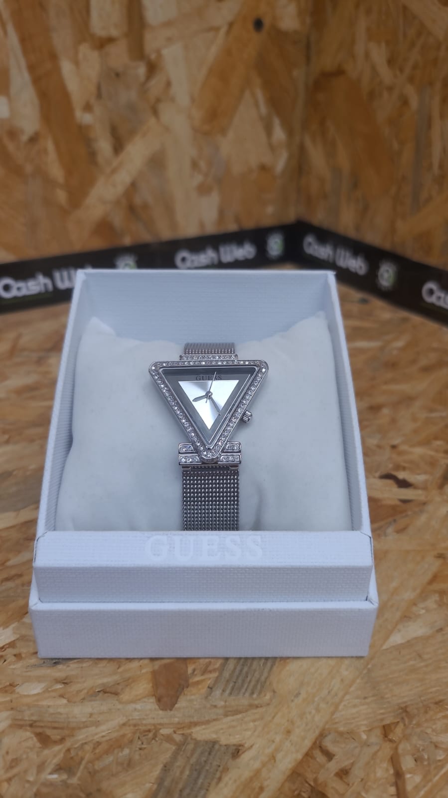 Montre Guess Femme Fame bracelet argent boitier triangle orné de strass